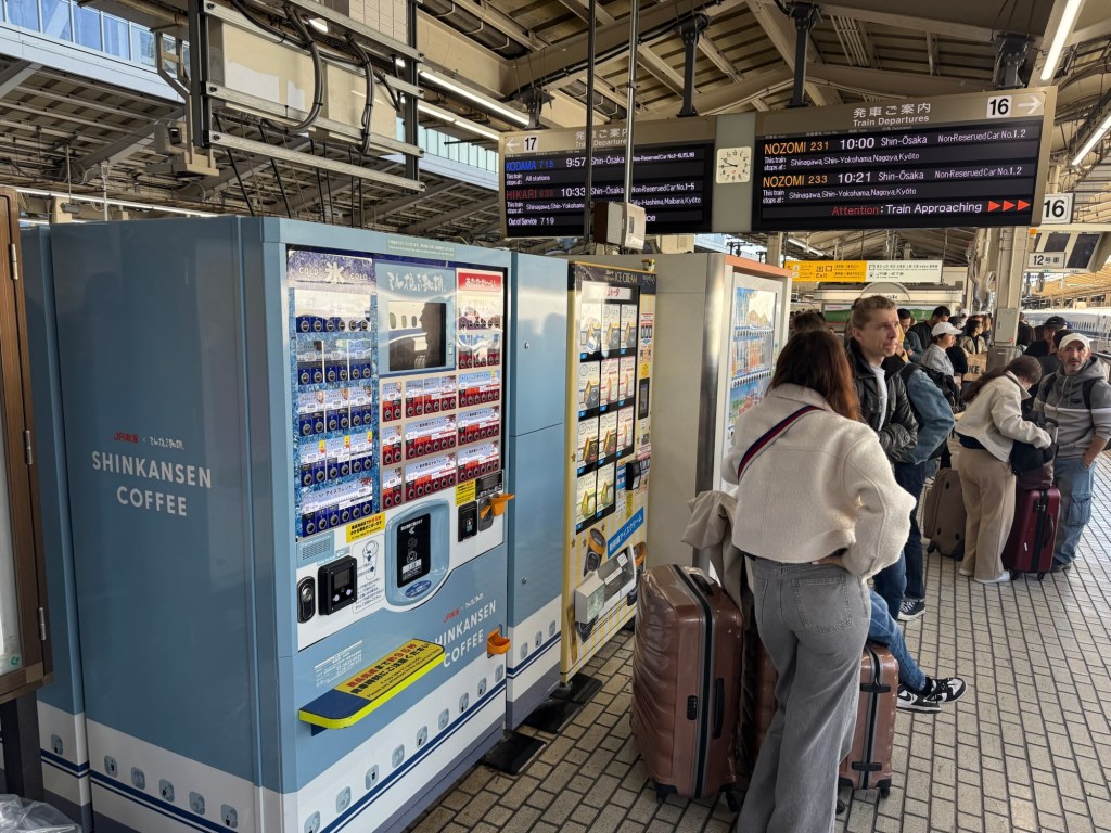 Lunch secured, we needed to find the right train line and tracks for the Shinkansen and use one of the ticket machines to exchange the QR code we received when we bought our tickets online at Baolau.com for physical tickets to go thru the gates. This did not take long, but we waited until the track was posted before going thru the gates. There are quite a few departures to Kyoto, with another one leaving 20 minutes before ours, giving us a chance to look around the track. One thing that stuck in my mind from our 2017 trip to Tokyo were the variety of things sold in vending machines and there were three machines near our departure area, one with ice cream and the other, drinks and a third with coffee. We see these vending machines elsewhere in the cities, on the sidewalks as well.
