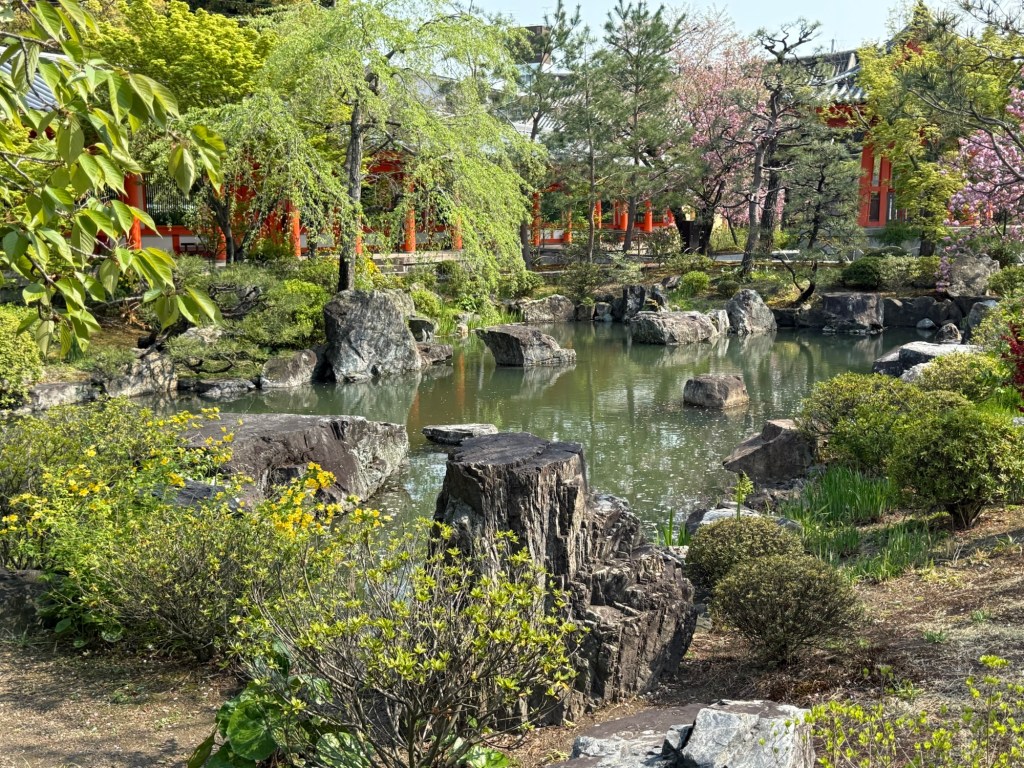 In the center of the main hall sits a large, wooden statue of a 1000-armed Kannon (Senju Kannon) that is flanked on each side by 500 statues of human sized 1000-armed Kannon standing in ten rows. The thousand armed Kannon is depicted with a thousand arms and sometimes eleven heads, signifying his ability to see and help all beings in need. The 11 heads represent different aspects of Avalokiteśvara’s compassion and awareness. The ten lower heads are often seen as representing the stages of enlightenment or the ten virtues of the Bodhisattva, while the top head symbolizes the Buddha of Infinite Light. This statue has 40 smaller arms sprouting from its sides in addition to the two arms with hands pressed together in prayer in front of its chest. Each of these smaller arms is believed to have the strength of 25 arms, meaning that 40 of them are equal to 1,000 arms.
