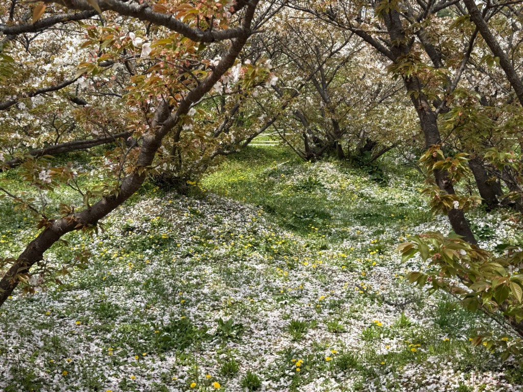 The sheer mass of blooming cherry trees fragrances the air as you walk down the wooden planked paths woven among the blossoming trees.