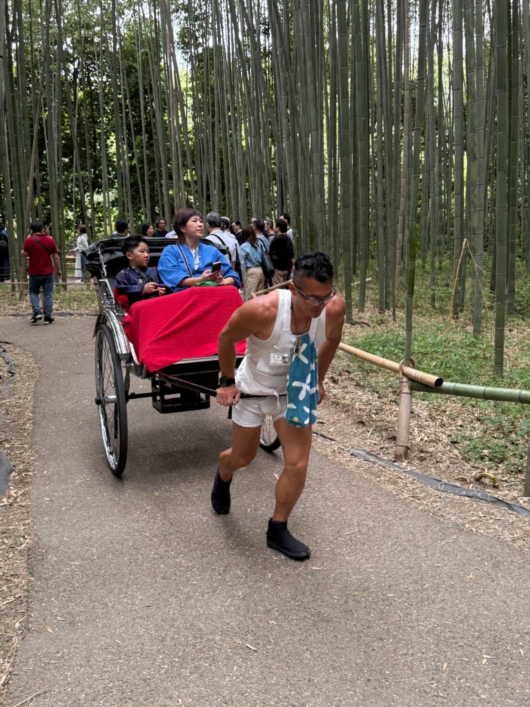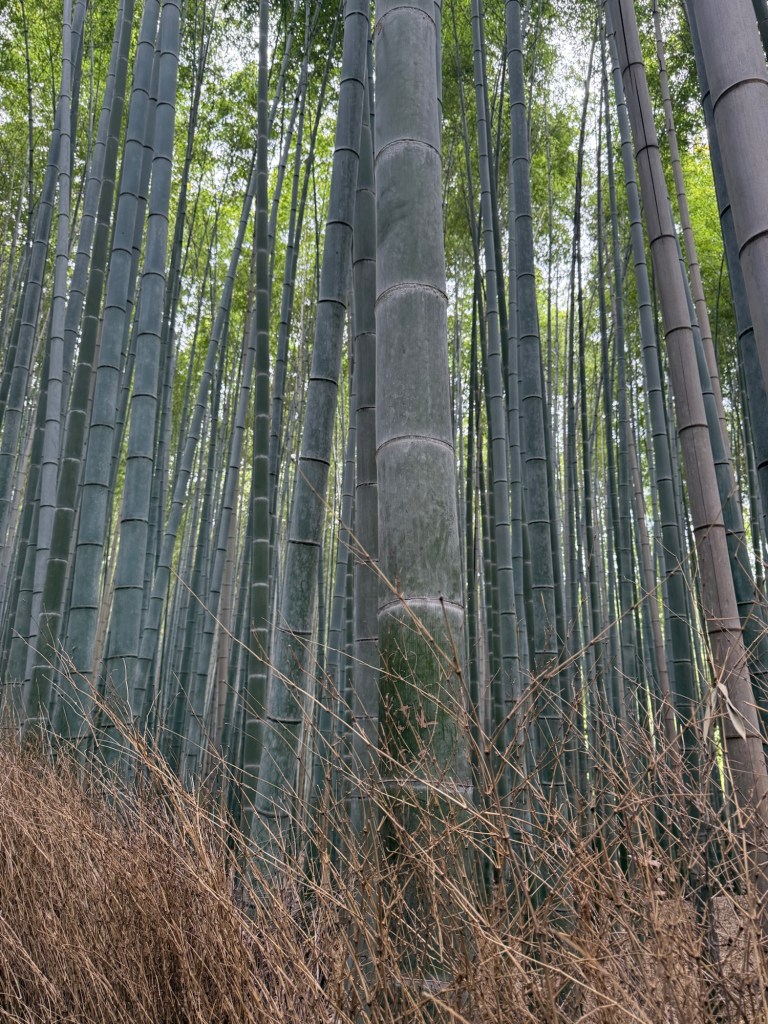 We wound our way through town to the point where the signs pointed to “bamboo forest”, about a 15 minute walk from the station and soon found the entrance to the trails that lead through the towering bamboo forests.