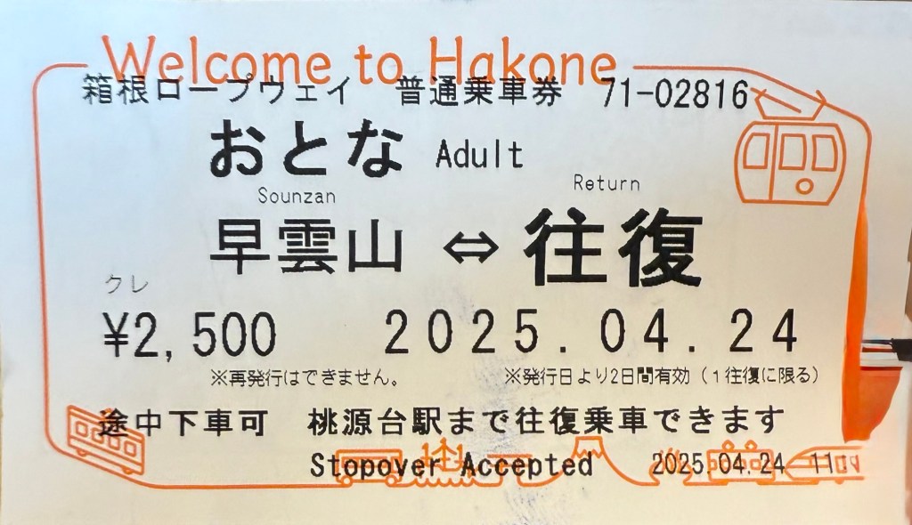 Since we don’t have a car, we found that the hotel shuttle will take us to our activity for the day- the ropeway (cable car) up one of the slopes , then change , and down to the lake, where we’ll take a lake cruise around Lake Ashinoko.