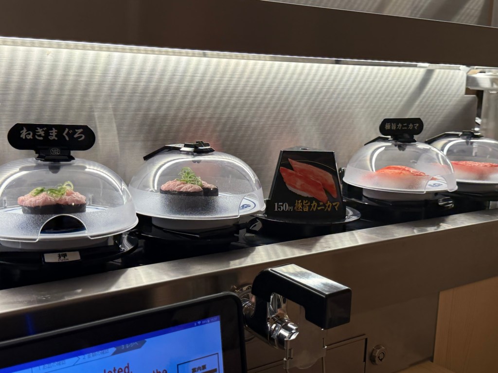 We went to the top floor of the same building for a late lunch (Kura). Check in on a screen that gives you a number. Wait for your number to be called/shown on a screen, then an actual person (!!) gives you a slip of paper with your table #, directs you to a cubicle where you use a touchscreen to place your order. The items arrived (literally zipping up on a conveyor belt next to you). When you are finished with a dish, there’s a slot to put the dish into. Once you are ready to check out, go to a self-checkout terminal where you scan the piece of paper that has the table #, it pulls up your ordered items, touch your credit card to the terminal and, you’re done. Very inexpensive.