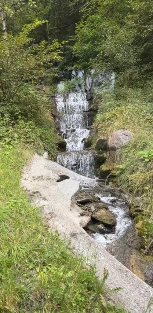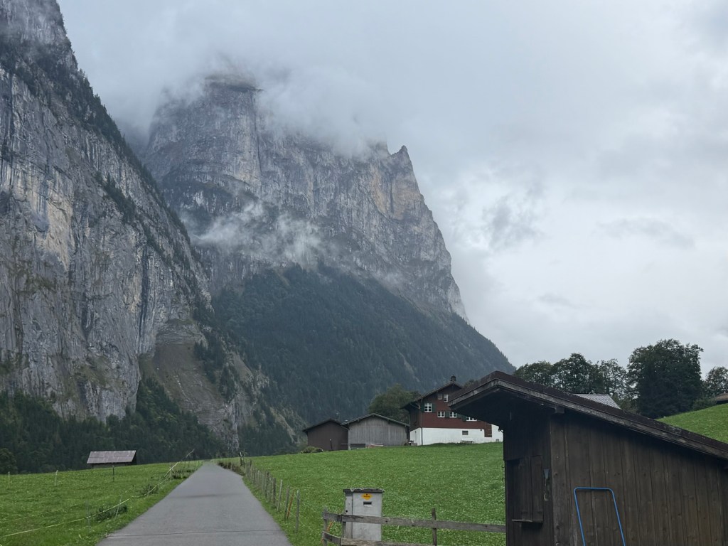 Continuing on, we walked down the valley past Camping Jungfrau (permanent campground) a bit further until it started to drizzle a bit more .