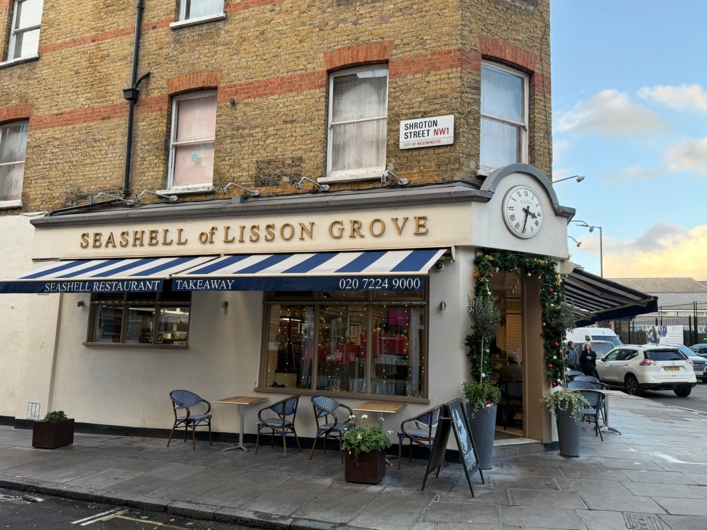 What would a visit to London be without a meal of Fish & Chips? We’ve eaten at Sea Shells in Lisson Grove a number of times. £21.50 for a large serving of freshly fried cod & chips (French fries) , or £15 for just the cod.
