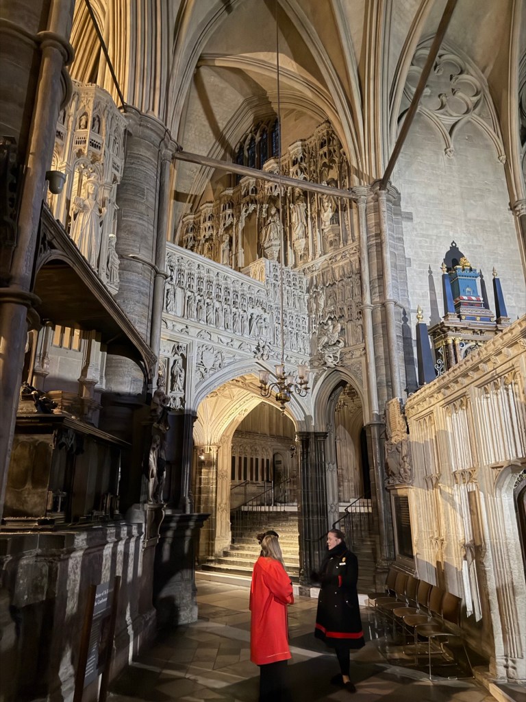 The Abbey has a 1000 year+ history as a place of worship, but began as a Benedictine monastery around 960 AD, with its first significant church commissioned by Edward the Confessor (the Chapel of St Edward the Confessor contains the shrine of Edward the Confessor, with the Coronation Chair above it, which was inaccessible to the public due to its fragility) in the 1040s, consecrated in 1065 and becoming the site of the first coronation (William the Conqueror, 1066). It has been the setting for every Coronation since 1066. The current Gothic structure started in 1245 under Henry III. It was designed as a royal church for coronations, burials, and worship, evolving into a national symbol of British monarchy (the Evensong ceremony even includes hommage to the Royal family). The ceremony, beginning at 5pm did not include a choir tonight, but did include biblical canticles (Magnificat, Nunc dimittis), alongside scripture readings, prayers, and a short sermon.