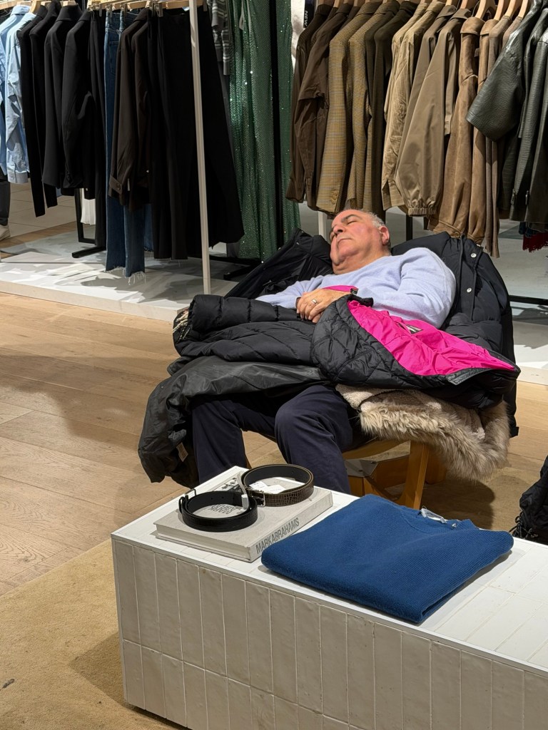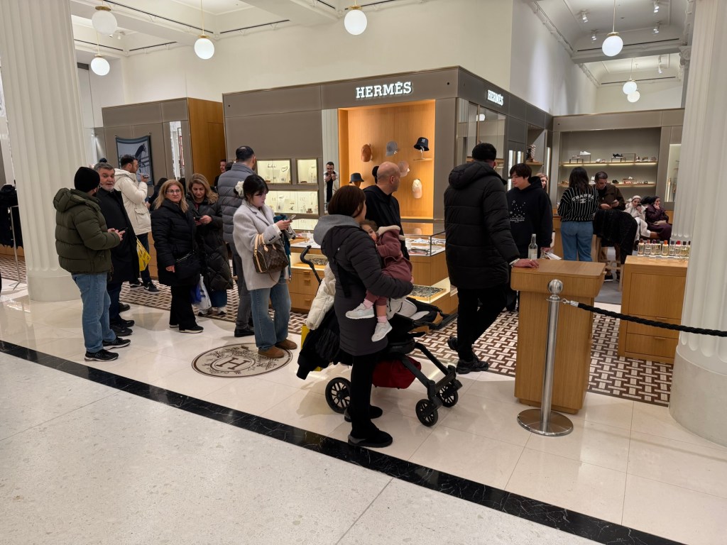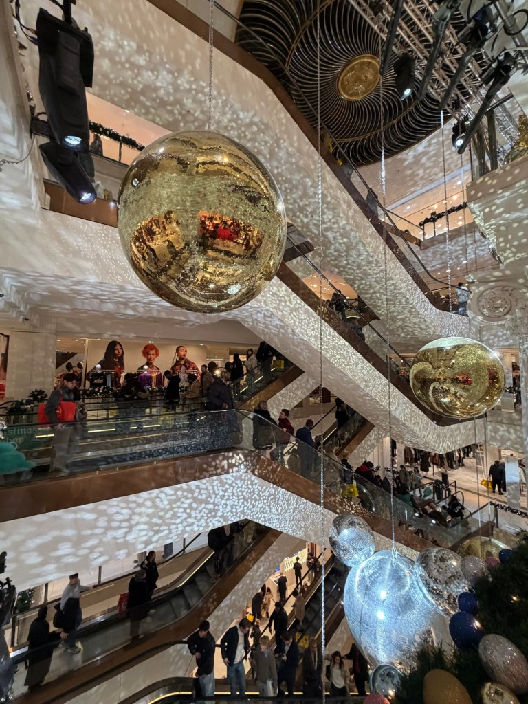 The shopping floors are super crowded. There are boutiques for each brand (four floors of them); the aisles are crowded. Did they just now realize tomorrow is Christmas?