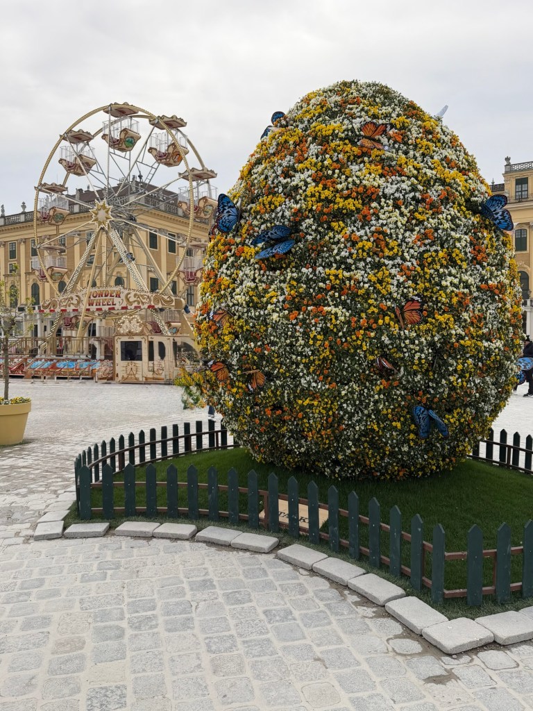After breakfast, we walked to Stephansplatz to take Wiener Linean (subway) line out to Schönbrunn for an Easter fair that goes on until near the end of the month. We’ve been to Schönbrunn several times before, so we are not planning on touring the palace, but enjoying the fair and walking the gardens. Buying tickets at the terminal is simple and they are pre validated do you do not need to punch them in the machine before going down to the platform. It’s not more than about 25 minutes out from Stephansplatz to Schönbrunn on the subway, with one change of lines, and then a five minute walk to the palace.