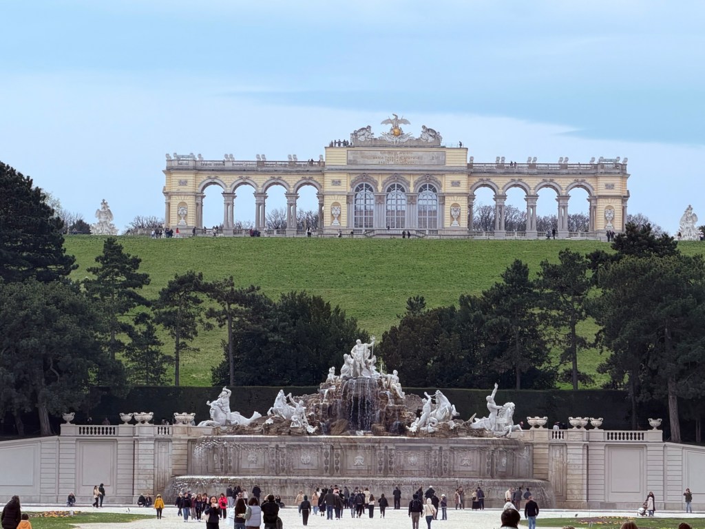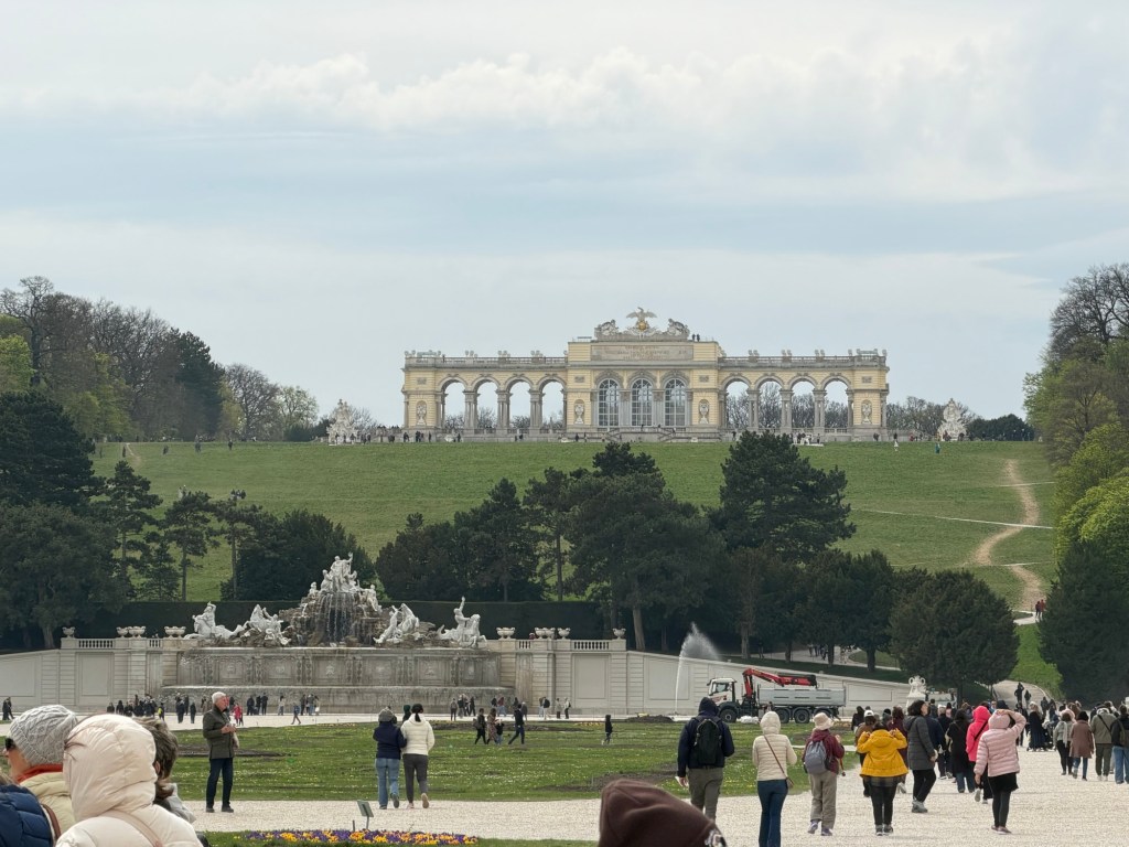 Schönbrunn (Schönbrunn means “beautiful spring”) was the summer palace for the Royal family. Like other “getaways” , it evolved from a 14th-century manor (Katterburg) into a premier Baroque summer residence for the Habsburgs after Emperor Maximilian II acquired the land in 1569. Over time, it was expanded and transformed into a grand Baroque summer residence and center of court life, featuring 1,441 rooms, Rococo interiors, and the expansion of the gardens. Remodeled by Maria Theresa in the 1740s, it served as the center of imperial power until 1918.