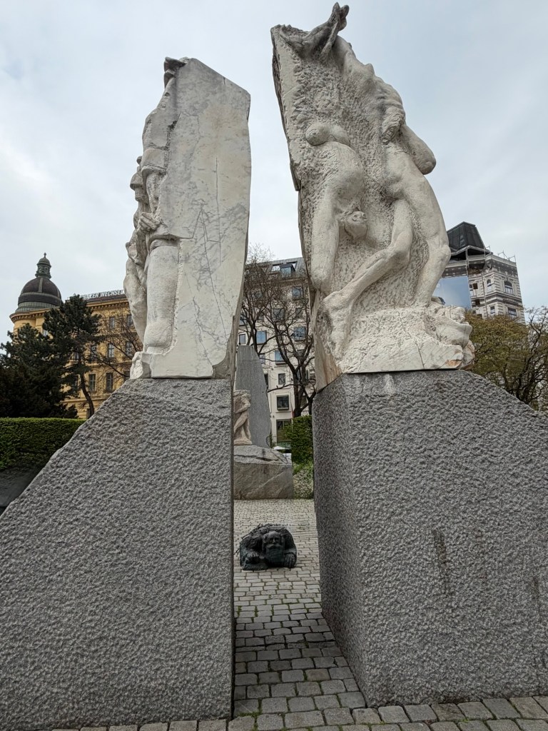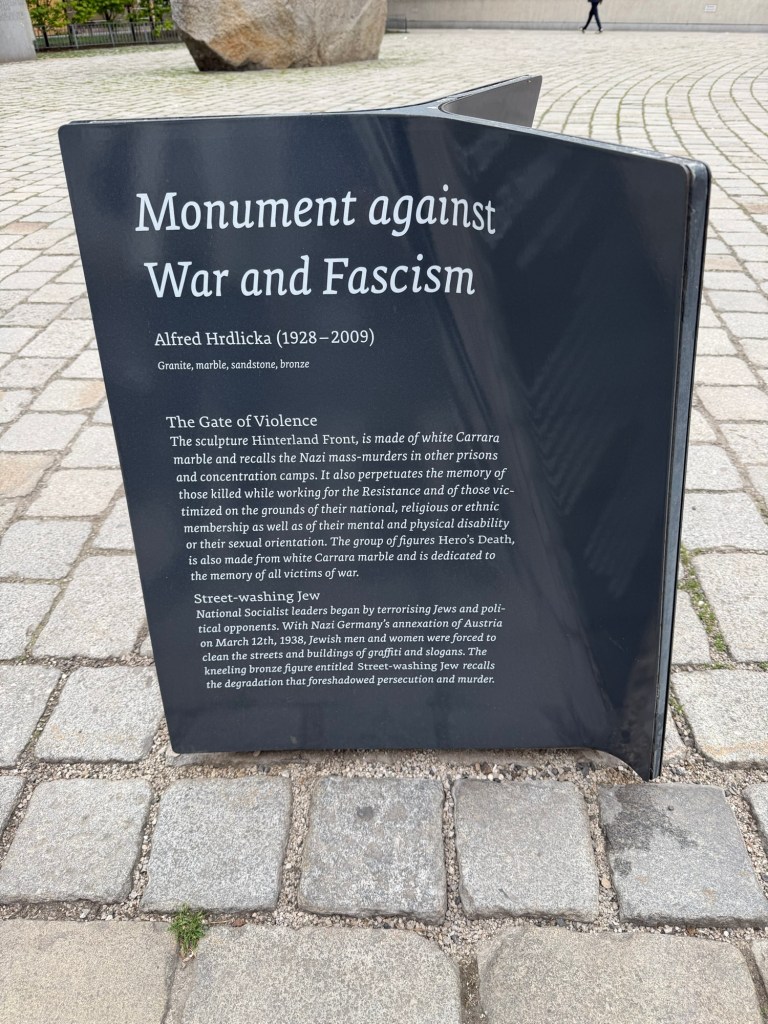 Continuing on our way to the Opera, we’ll pass the Albertina Museum and in a small park across the street are memorials against the horrors of war , called the Gates of Violence, unfortunately, ever present within our society, especially today.