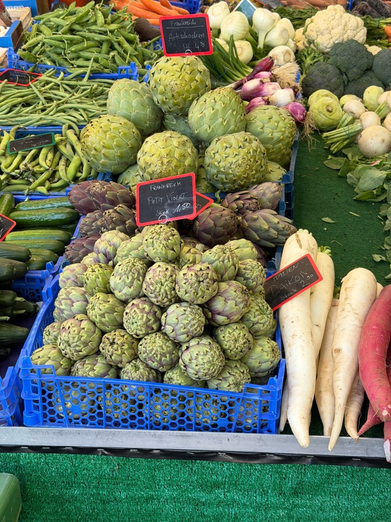 The Viktualienmarkt developed from an original farmers’ market. Circled around the outer perimeter of the Viktualienmarkt are quite a few shops, specialized in products like cheeses, honey, olives (YouTube), flowers & plants, butchers, vegetables, handmade items.