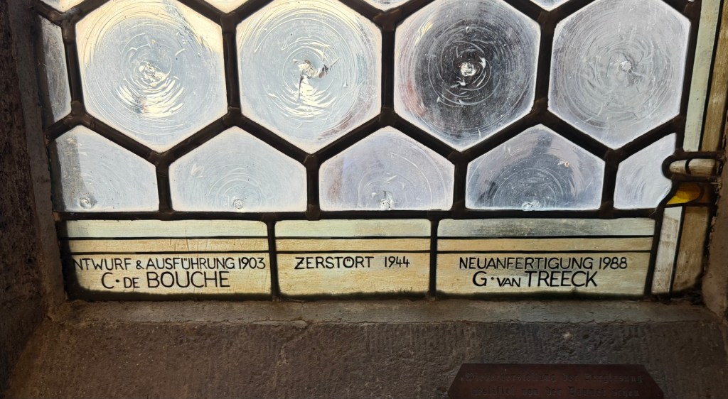 The city was heavily damaged from Allied bombing during WWII, though the Neues Rathaus was largely spared; all of the stained glass windows we saw were restorations/replacements made post-war. The Allied command made the Neues Rathaus their headquarters in April 1945 and gathered three former (non-Nazi ) mayors to discuss reconstruction of the city. The guide said the Allied commander actually suggested relocating the city elsewhere rather than reconstruction, though extreme proposals like this did not prevail. It’s indeed fortunate the mayors and planners gave the matter no thought , or the 860+ year legacy of Munich as it is today would have been lost.