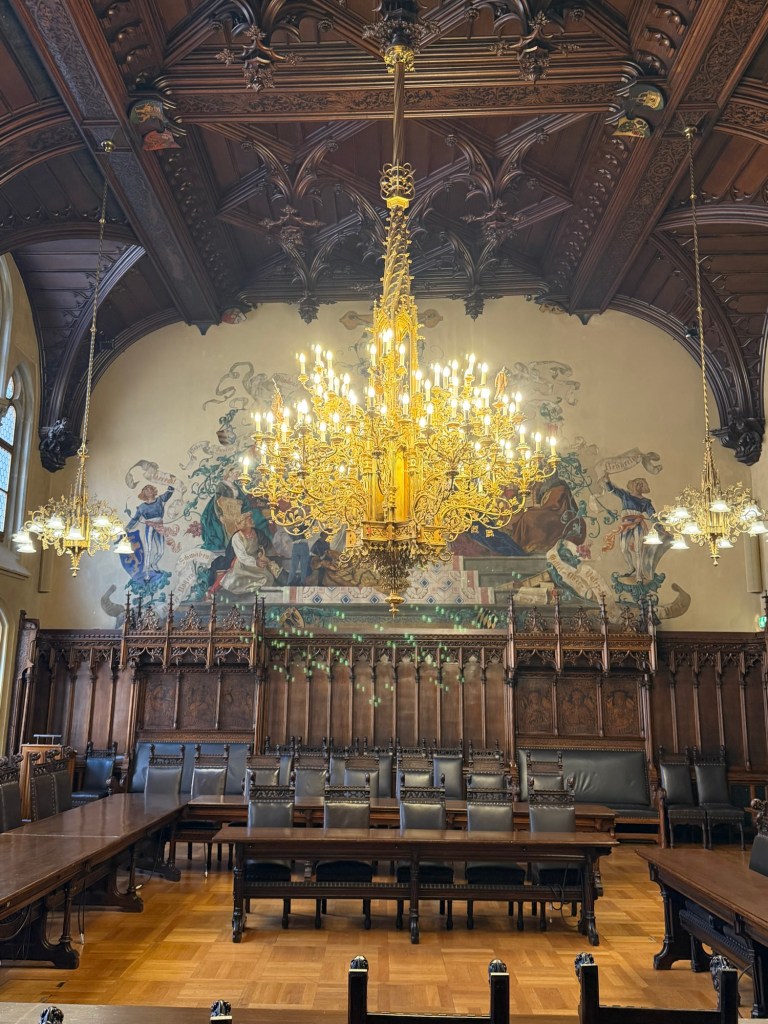 One bucketlist sight we’ve never gotten around to before today, either because it is not open every day, forgot about it, or had other places to see, was the tour of the Neues Rathouse (city hall) and the law library (Juristische Bibliothek) .