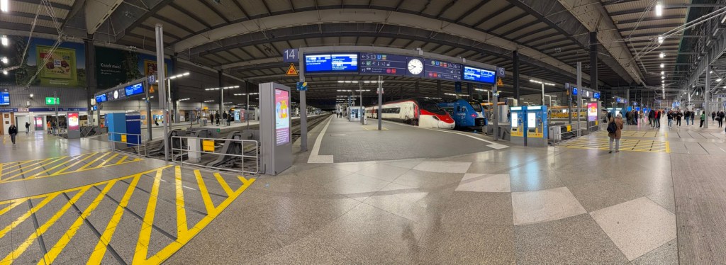 It’s a ~10 hour trip. As always, you need reservations for your destination, as all wagons in the train don’t necessarily go to the final destination (Amsterdam Centraal for us). The wagons usually arrive in sequential numerical order. I suppose because of the multiple stops along the way, the numbering wasn’t sequential, making finding your car a little more challenging, and there was no composition chart on trackside as there often is, to show which numbered wagons would be in which track section (so you know where to stand).