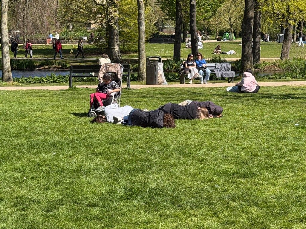 After our stroopwafle and Uniqlo stops, we had just a bit of time left to go to Vondelpark, the largest city park in Amsterdam. With the blue skies and moderate temperatures, it was a day on which many found themselves relaxing at the park.