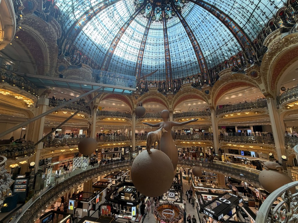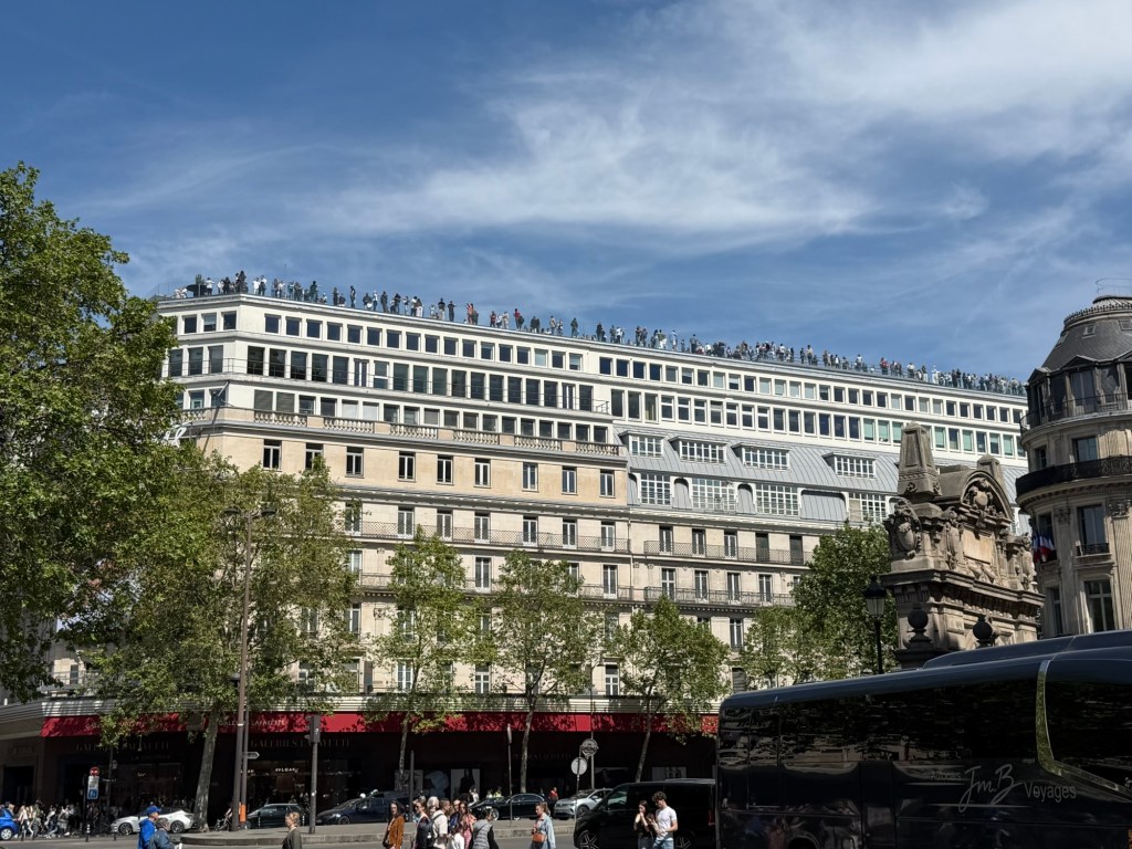 Shopping done, we walked towards Galleries Lafayette. Predictably, on this beautiful day, there were quite a few people on the roof getting a view of the Paris skyline.